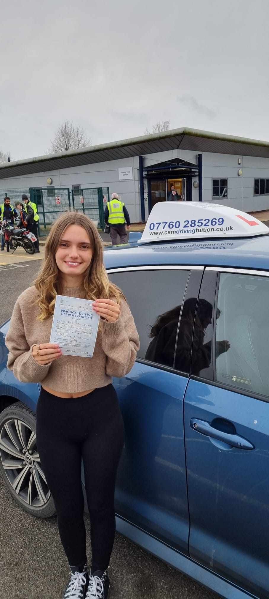 Passed my driving test first time because of CSM I would recommend them to anyone thinking about staring there driving journey! Sam my instructor has been amazing, even after COVID lockdowns getting in the way of my driving journey she still invested her time to make sure I was ready for my test. As a result of this I passed first time! Thereโ€™s only one company to start your driving lessons with and that's CSM Driving tuition! Thank you so much!
