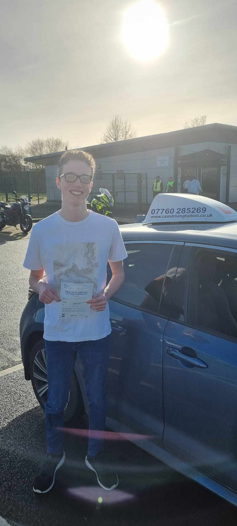 Passed my driving test first time because of CSM I would recommend them to anyone thinking about staring there driving journey! Sam my instructor has been amazing, even after COVID lockdowns getting in the way of my driving journey she still invested her time to make sure I was ready for my test. As a result of this I passed first time! Thereโ€™s only one company to start your driving lessons with and that's CSM Driving tuition! Thank you so much!